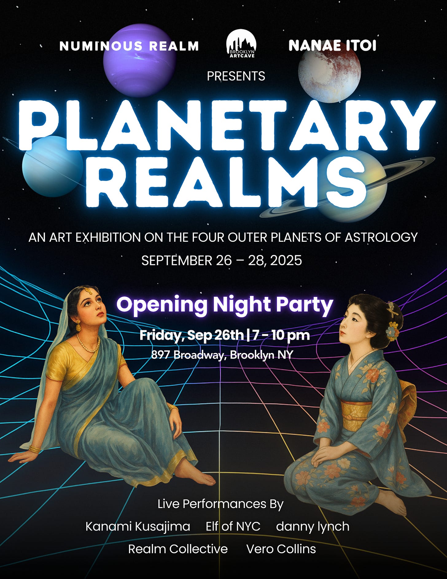 This groundbreaking collaboration between Numinous Realm, Brooklyn Art Cave, and Nanae Itoi fuses grounded creativity, archetypal astrology, and lush digital dreamscapes.